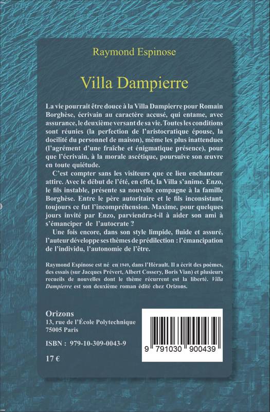 La vie pourrait être douce à la Villa Dampierre pour Romain Borghèse. L'écrivain poursuivrait son uvre littéraire en toute quiétude s'il n'y avait son fils, Enzo, instable et incompris