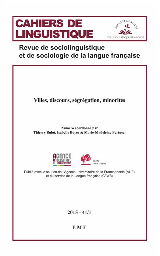 Au sommaire : Marquage linguistique des situations de minorité dans les territoires ségrégués (M.-M. Bertucci) / Négociation linguistique des relations de pouvoir. Rapports interethniques et variation linguistique à Windhoek, Namibie (G. Stell) / L'impact de la "décennie noire" sur la perception des différents quartiers d'Alger et l'usage des langues (K. Djerroud) / La place des vannes dans l'univers social des jeunes issus de l'immigration (M. Mukhina) / Stratégies mobilitaires et minorités (T. Bulot) / Processus discursif de normalisations dans l'interaction surveillant-e/détenu-e comme rapports de domination institutionnalisés. (N. Troël-Sauton).