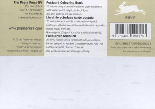 21 delicate designs printed on superior paper suitable for watercolour, pencil, crayon, marker, ink, etc; 250gsm acid free and age resistant