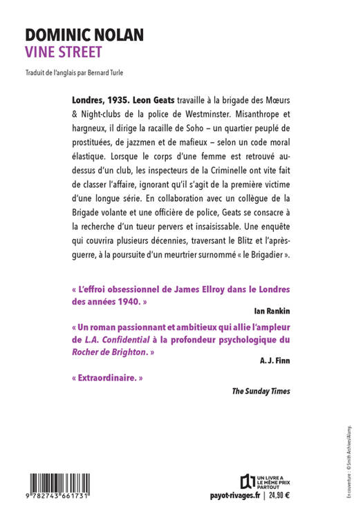 « L'effroi obsessionnel de James Ellroy dans le Londres des années 1940. » Ian Rankin