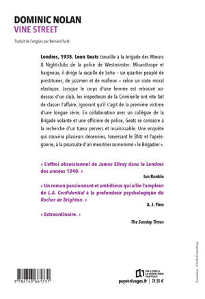 Londres, 1935. Leon Geats travaille à la brigade des Moeurs & Night-clubs de la police de Westminster. Misanthrope et hargneux, il dirige la racaille de Soho - un quartier peuplé de prostituées, de jazzmen et de mafieux - selon un code moral élastique. Lorsque le corps d'une femme est retrouvé au-dessus d'un club, les inspecteurs de la Criminelle ont vite fait de classer l'affaire, ignorant qu'il s'agit de la première victime d'une longue série. En collaboration avec un collègue de la Brigade Volante et une officière de police, Geats se consacre à la recherche d'un tueur pervers et insaisissable. Une enquête qui couvrira plusieurs décennies, traversant le Blitz et l'après-guerre, à la poursuite d'un meurtrier surnommé « le Brigadier ».