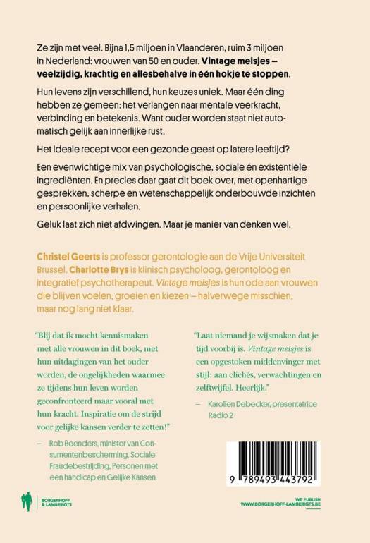 Ze zijn met veel. Bijna 1,5 miljoen in Vlaanderen, ruim 3 miljoen in Nederland: vrouwen van 50 en ouder. Vintage meisjes - veelzijdig, krachtig en allesbehalve in één hokje te stoppen.