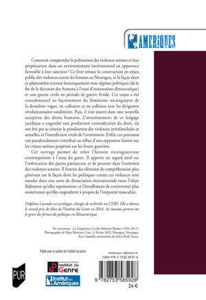 Cet ouvrage permet de relire l'histoire nicaraguayenne contemporaine à l'aune du genre. Il apporte un regard neuf sur l'imbrication des pactes patriarcaux et de pouvoir dans l'entretien des violences sexistes. Il fournit des éléments de compréhension plus généraux sur la façon dont les politiques contre ces violences sont menées dans une sorte de dissociation instrumentale entre l'objet fédérateur qu'elles représentent, et l'étouffement de controverses plus souterraines qu'elles engendrent à propos de l'impunité masculine.