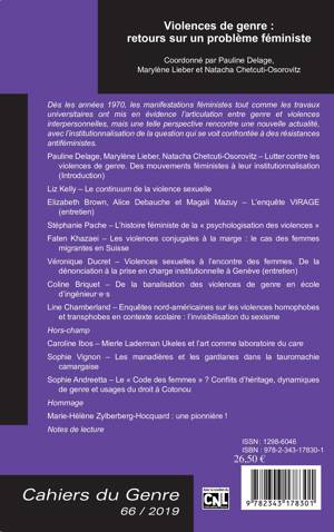 Dès les années 1970, les manifestations féministes tout comme les travaux universitaires ont mis en évidence l'articulation entre genre et violences interpersonnelles, mais une telle perspective rencontre une nouvelle actualité, avec l'institutionnalisation de la question qui se voit confrontée à des résistances antiféministes.