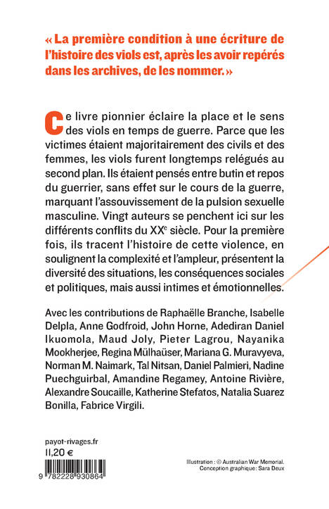 Ce livre pionnier éclaire la place et le sens des viols en temps de guerre. Parce que les victimes étaient majoritairement des civils et des femmes, les viols furent longtemps relégués au second plan. Ils étaient pensés entre butin et repos du guerrier, sans effet sur le cours de la guerre, marquant l'assouvissement de la pulsion sexuelle masculine. Vingt auteurs se penchent ici sur les différents conflits du XXe siècle. Pour la première fois, ils tracent l'histoire de cette violence, en soulignent la complexité et l'ampleur, présentent la diversité des situations, les conséquences sociales et politiques, mais aussi intimes et émotionnelles.