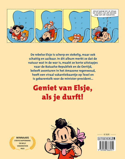 De rebelse Elsje is scherp en stekelig, maar ook schattig en aaibaar. In dit album merkt ze dat de natuur wat in de war is, maakt ze korte uitstapjes naar de Bataafse Republiek en de Oertijd, beleeft avonturen in het Amazone regenwoud, heeft een viraal vakantiebaantje op Texel en is gebarentolk voor de minister-president...