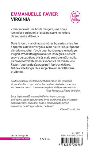 Sous la plume d’Emmanuelle Favier, le personnage de Virginia Woolf acquiert une force attachante. Elle retranscrit admirablement son ennui dans la maison londonienne, son amour des Cornouailles et de la mer. Claire Chazal, Lire.
