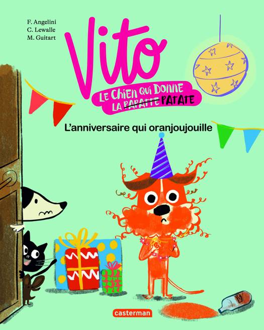 Aujourd'hui, Vito veut se faire beau pour son anniversaire. Mais c'est raté ? ! Le voilà avec le poil qui oranjoujouille... Avec sa tête de citrouille, il est mal parti pour passer une bonne journée. Heureusement que ses amis ont de bonnes idées pour que son anniversaire soit réussi ! Vito n'est pas le genre de chien à donner la papatte. En revanche, il donne la patate à toutes celles et ceux qui le croisent ! Normal, Vito est un chien qui rigolouille. Qui rigolouille ? Oui, comme de bonnes grosses chatouilles !
