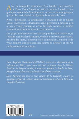 Avec la tranquille assurance d’un familier des mystères de Dieu, Dom Augustin invite le lecteur à méditer sur quelques solennités liturgiques et autres récits évangéliques qui ont la particularité de répandre la lumière de Dieu. Noël, l’Épiphanie, la Chandeleur, l’Exaltation de la Sainte Croix, l’Ascension… deviennent alors prétextes à dévoiler peu à peu le visage humain et divin du Verbe incarné, « lumière éclairant tout homme venant en ce monde. » Ces pages lumineuses écrites par un grand moine chartreux, si solitaire et si proche du monde, veulent être de vivantes clartés. Au-delà des mots, l’auteur incite à contempler Celui qui est la vraie lumière, que l’on prie aux heures de détresse, et qui vit caché au fond de nos âmes.