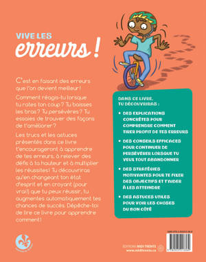 Comment réagis-tu lorsque tu rates ton coup ? Tu baisses les bras ou bien tu te retrousses les manches et tu persévères ? Sais-tu que tu peux choisir de réussir ? Et tes erreurs peuvent t’aider ! Elles te permettent de réfléchir à ce qui a moins bien fonctionné et t’aident à trouver des façons de t’améliorer. Les trucs et les astuces présentés dans ce livre t’encourageront à apprendre de tes erreurs, à relever des défis à ta hauteur et à multiplier les réussites ! Tu découvriras qu’en changeant ton état d’esprit et en croyant (pour vrai !) que tu peux réussir, tu augmentes automatiquement tes chances de succès. Dépêche-toi de lire ce livre pour apprendre comment !