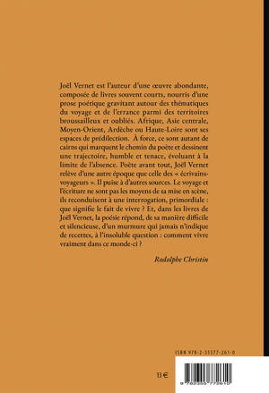 « Aux livres, j’ai souvent préféré la belle palpitation du monde et suis allé au dehors pour amasser toute la chaleur du soleil, sa bonté inouïe. »<br /><br /> QUOI ? Vivre, cette splendeur sauvage est un livre d’entretiens au cours duquel l’auteur revient sur ses différents ouvrages, ses préceptes et les nombreux voyages qui jalonnent son parcours poétique — et humain.<br /> L’auteur évoque son désir de se mettre en retrait, de partir sur les routes en nomade, ainsi que son besoin de s'éloigner du monde pour mieux, ensuite, le retrouver.<br /><br /><br /> COMMENT ? Joël Vernet est l’auteur d’une oeuvre abondante, composée de livres souvent courts, nourris d’une prose poétique gravitant autour des thématiques du voyage et de l’errance. <br /><br /> Nous retrouvons dans ce livre un feuillet nommé Copeaux du Dehors proposant des fragments de proses inédits ainsi que des entretiens parus dans des revues comme Rumeurs, actualité des écritures, Strada ou au sein de bulletins ou de billets de blog. <br /><br /> Extrait 1 : « J'étais farouche, presque muet. Nous grandissions dans l'idée de la perte, de l'abandon toujours possibles, sans boussole aucune, mais libres. Il y aurait des livres à écrire sur l'absence des pères. Voyez Rimbaud, Augiéras, et tant d'autres. Il n'est pas impossible que certaines écritures prennent source là. »<br />