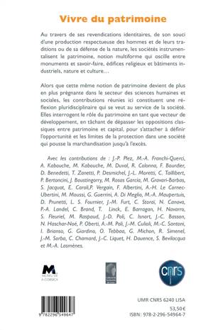 Les sociétés instrumentalisent le patrimoine, notion multiforme qui oscille entre monuments et savoir-faire, édifices religieux et bâtiments insdustriels, nature et culture.... Ces contributions interrogent le rôle du patrimoine en tant que vecteur de développement, en tâchant de dépasser les oppositions classiques entre patrimoine et capital, pour s'attacher à définir l'opportunité et les limites de la protection dans une société qui pousse la marchandisation jusqu'à l'excès.