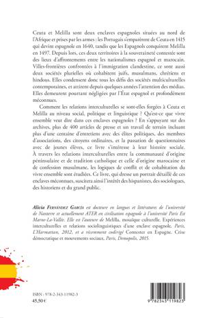 Ceuta et Melilla, deux enclaves espagnoles au nord de l'Afrique, sont des sociétés plurielles où cohabitent juifs, musulmans, chrétiens et hindous. Comment les relations interculturelles s'y sont-elles forgées ? Qu'est-ce que vivre ensemble veut dire dans ces territoires ? En s'appuyant sur des archives et un travail de terrain, et en étudiant les logiques de conflit et de cohabitation du vivre ensemble qui y les caractérisent, ce livre s'intéresse à l'histoire sociale de ces deux enclaves méconnues.