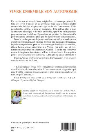 Comment proposer une voie opérationnelle d'apprentissage social de l'autonomie ? Il s'agit plus d'une dynamique initiatique à inventer ensemble que d'un enseignement à réaliser. Cet ouvrage initie une voie pour rendre les ruptures formatrices, pour utiliser les imprévus et les surprises pour "vivre ensemble son autonomie".