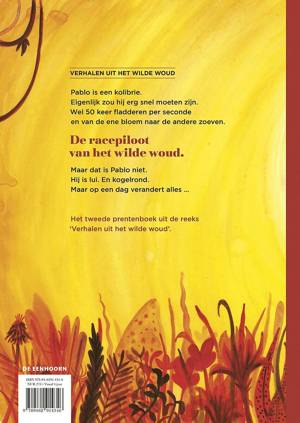 In de reeks ‘Verhalen uit het wilde woud’. Vanaf 4 jaar. Een vrolijk verhaal over anders zijn. Met bruisende illustraties boordevol vogels. Een kleurrijk jungleverhaal over lui zijn en verliefd worden. Pablo is een kolibrie. Eigenlijk zou hij erg snel moeten zijn. Wel 50 keer fladderen per seconde en van de ene bloem naar de andere zoeven. Maar dat is Pablo niet. Hij is lui. En kogelrond. Maar op een dag verandert alles ... Pablo is verliefd!