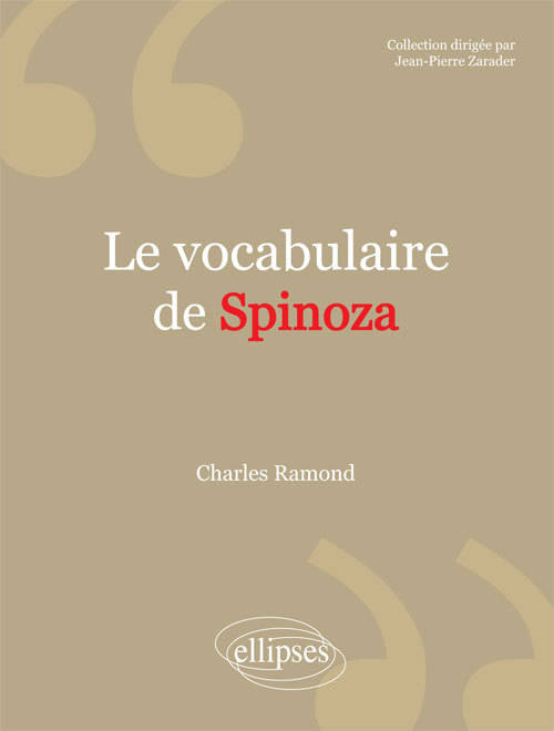 Une philosophie exposée « à la manière des géomètres » fournit elle-même les définitions de ses principaux concepts. Le vocabulaire de Spinoza que nous présentons ici au lecteur est cependant bien autre chose qu’un simple relevé. Spinoza ne définit pas toujours les termes qu’il emploie. Il lui arrive d’en définir sans les employer. Plus souvent encore, il les emploie en plusieurs différents sens. Étudier le vocabulaire de Spinoza est ainsi un geste un peu irrespectueux, vérification soupçonneuse plutôt que récitation docile ; mais un geste très respectueux aussi, respectueux de la moindre phrase effectivement écrite par le philosophe, du moindre mot, du moindre adjectif, jusqu’au genre, jusqu’au nombre. Ce respect irrespectueux dans l’attention aux détails, qui fait vivre la doctrine dans son interprétation, n’est-ce pas d’ailleurs Spinoza lui-même qui nous l’aurait enseigné, dans sa patiente et impatiente lecture des Écritures ?