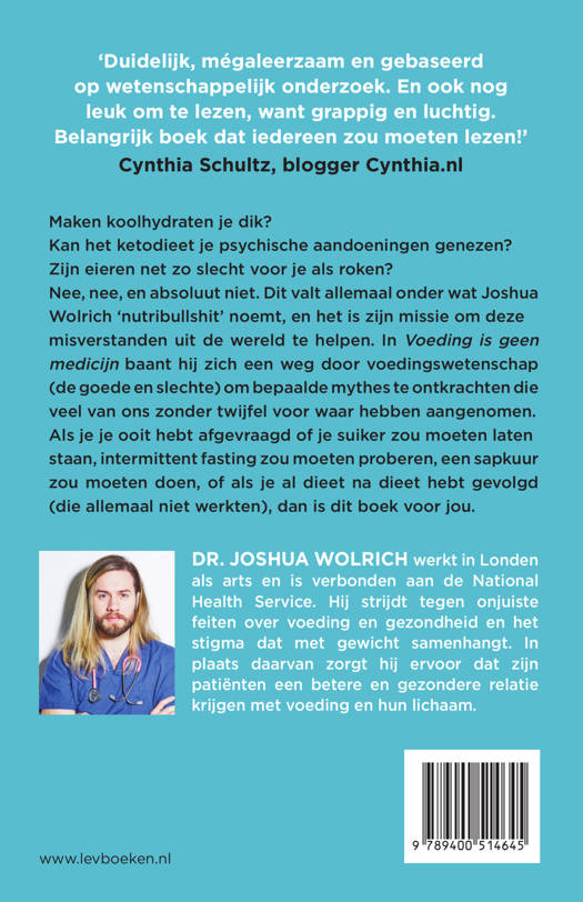 Nee, nee, en absoluut niet. Dit valt allemaal onder wat Joshua Wolrich ‘nutribullshit’ noemt, en het is zijn missie om deze misverstanden uit de wereld te helpen. In Voeding is geen medicijn baant hij zich een weg door voedingswetenschap (de goede en slechte) om bepaalde mythes te ontkrachten die veel van ons zonder twijfel voor waar hebben aangenomen.