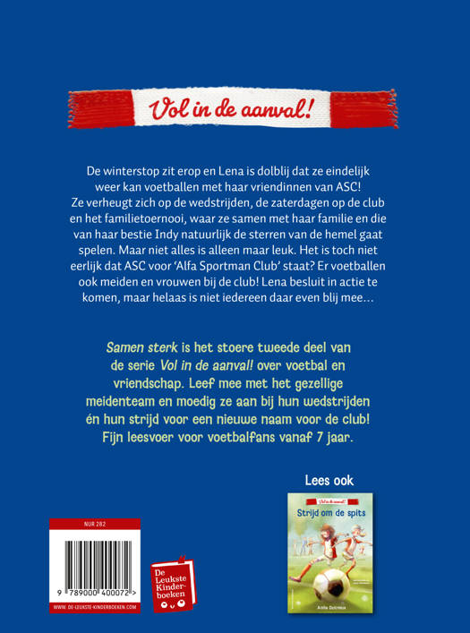 Vol in de aanval 2 – Samen sterk is geschikt voor iedereen vanaf 7 jaar die van lezen én van voetbal houdt. Laury Tinnemans van Studio Monnikenwerk maakte de vrolijke illustraties.