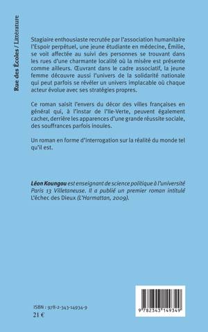 Stagiaire enthousiaste recrutée par l'association humanitaire l'Espoir perpétuel, une jeune étudiante en médecine, Émilie, se voit affectée au suivi des personnes se trouvant dans les rues d'une charmante localité où la misère est présente comme ailleurs. Ce roman saisit l'envers du décor des villes françaises en général, qui, à l'instar de l'Ile-Verte, peuvent également cacher, derrière les apparences d'une grande réussite sociale, des souffrances parfois inouïes. Un roman en forme d'interrogation sur la réalité du monde tel qu'il est.