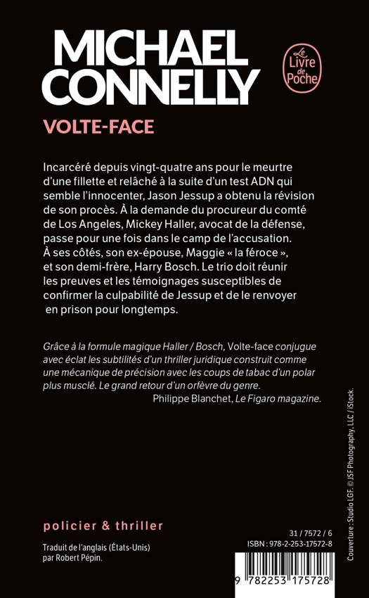 Grâce à la formule magique Haller/Bosch, Volte-face conjugue avec éclat les subtilités d’un thriller juridique construit comme une mécanique de précision avec les coups de tabac d’un polar plus musclé, garantissant jusqu’à la fin un infernal suspense et de palpitants rebondissements. Le grand retour d’un orfèvre du genre. Philippe Blanchet, Le Figaro Magazine.
