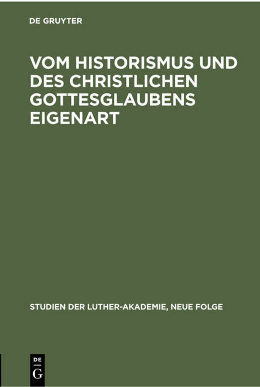 Vom Historismus Und Des Christlichen Gottesglaubens Eigenart