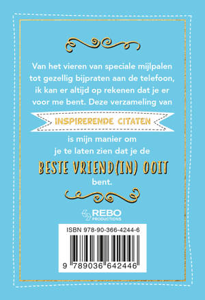 Van het vieren van speciale mijlpalen tot het gezellig bijpraten aan de telefoon. Je kunt altijd op je vriend of vriendin rekenen. Deze verzameling van inspirerende citaten en teksten is een mooie manier om te laten zien dat hij of zij de beste vriend(in) ooit is.