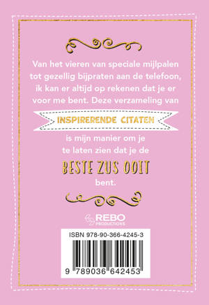 Van het vieren van speciale mijlpalen tot gezellig bijpraten aan de telefoon, je kunt er altijd op rekenen dat je zus er voor je is. Deze verzameling van inspirerende citaten is jouw manier om te laten zien dat zij de beste zus ooit is.