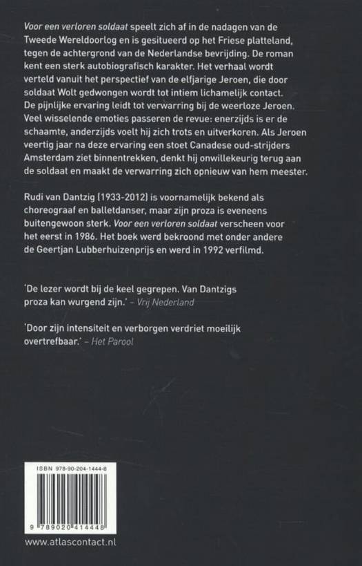 Heinneringen aan het laatste oorlogsjaar brengen hoofdpersoon Jeroen in verwarring. Jeroen werd tijdens de hongerwinter van Amsterdam naar Friesland geëvacueerd. Het verhaal wordt verteld vanuit zijn perspectief. Jeroen, destijds elf jaar, wordt door soldaat Wolt gedwongen wordt tot intiem lichamelijk contact. De pijnlijke ervaring leidt tot verwarring bij de weerloze Jeroen. Enerzijds is er de schaamte, anderzijds voelt hij zich trots en uitverkoren. Als Jeroen veertig jaar na deze ervaring een stoet Canadese oud-strijders Amsterdam ziet binnentrekken, denkt hij onwillekeurig terug aan de soldaat en maakt de verwarring zich opnieuw van hem meester.