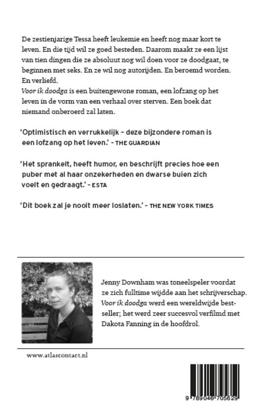 De internationale bestseller over een meisje dat 16 is en weet dat ze nooit 17 zal worden. Wat zou je doen als je nog maar een paar maanden te leven had? Voor Tessa van zestien is die vraag werkelijkheid. Ze heeft leukemie en nog maar kort te leven. Die tijd wil ze goed besteden. En dus maakt ze een lijst van tien dingen die ze absoluut nog wil doen. Seks. Autorijden. Beroemd worden. En verliefd. Hartverscheurend en grappig: Voor ik doodga is een buitengewone roman, een lofzang op het leven in de vorm van een verhaal over sterven. Van een aangrijpendheid die zeldzaam is in de jeugdliteratuur. Die Downham kan schrijven. de volkskrant Knap hoe debutante Downham zonder vals sentiment dit verhaal vertelt. (...) Het sprankelt, heeft humor. esta Geen onnodig sentiment, wel hartverscheurend echt. Hou de doos Kleenex maar bij de hand. libelle Een fantastisch boek dat je vanaf de eerste bladzijde al in zn greep houdt en je niet meer loslaat tot je het uit hebt. Chapeau!! chicklit.nl Het maakt niet uit hoe oud je bent, dit boek zal je bijblijven. new york times book review