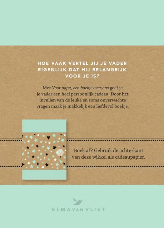 De dag dat hij je leerde fietsen, toen hij bij noodweer een geul rond de tent groef en uiteraard ook een paar typische niet-aan-je-moeder-vertellen-momenten. Voor papa, een boekje over ons is een mooi vormgegeven cadeauboekje om zelf te vullen met alle bijzondere momenten die jullie samen hebben beleefd.