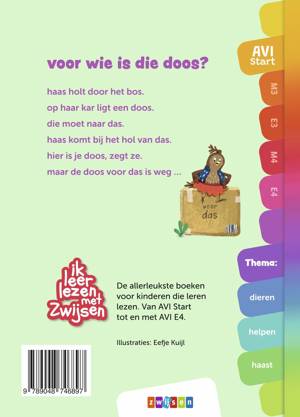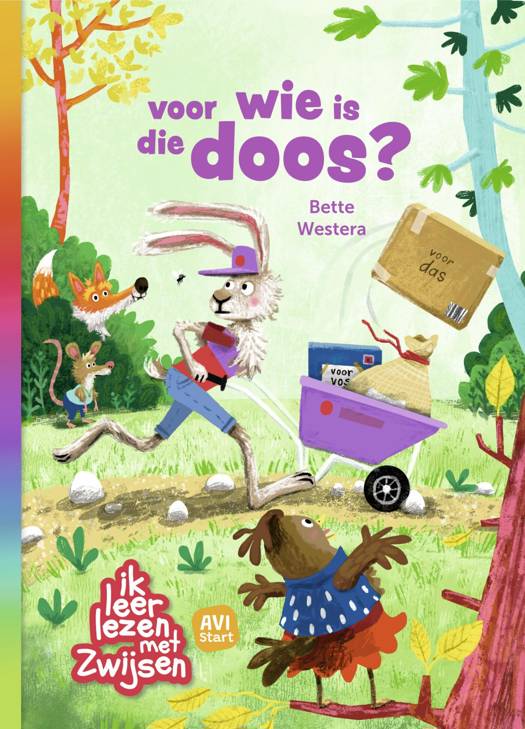 Grappig dierenverhaal over haas, een gestreste pakjesbezorger. Er vallen pakjes van zijn kar, gelukkig helpen mus, mees en muis hem. Op AVI Start, speciaal voor kinderen in groep 3 die net leren lezen.