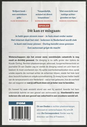 Wetenschappers zijn het erover eens: wereldwijde catastrofe is nog nooit zo dichtbij geweest; de dreiging is nu groter dan tijdens de Koude Oorlog. Rechter-plaatsvervanger, advocaat, burgerrechtenactivist en journalist Ot van Daalen zag en voelde het overal om zich heen, en besloot het beest in de bek te kijken. Hij spitte overheidsdocumenten door, sprak unieke experts die normaal achter de schermen blijven, reisde het hele land door, bezocht bunkers en volgde survivaltraining. Zo kreeg hij een helder beeld van de rampscenario's voor Nederland - wat er kan gebeuren, hoe de overheid dan zal reageren en wat jij zelf kan doen om je beter voor te bereiden.