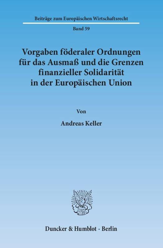 Vor diesem Hintergrund untersucht Andreas Keller die Ausprägungen finanzieller Solidarität in der Europäischen Union und insbesondere in der Wirtschafts- und Währungsunion. Durch die Gegenüberstellung, der föderalen Systeme Deutschlands, der USA, der Schweiz, Belgiens und Österreichs und ausgewählten Systemen auf präföderaler Entwicklungsstufe - hier vor allem Italien, Spanien und das Vereinigte Königreich - wird ein Referenzrahmen geschaffen, anhand dessen die Stärken und Schwächen der finanziellen Solidarität innerhalb der Europäischen Union deutlich werden. Mit diesen Erkenntnissen werden die rechtlichen Fragen der Krisenbewältigung bis hin zur Beistandsfrage in Notlagen (sog. Bailout) beantwortet.