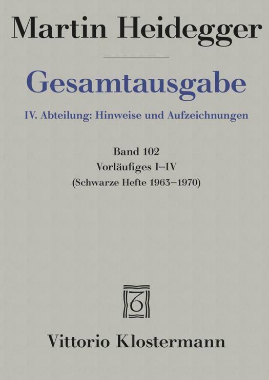 Der Band 102 der Gesamtausgabe ist der letzte der Schwarzen Hefte, deren erstes Heidegger 1931 angefertigt hat. Die vier letzten Hefte, die den bemerkenswerten Titel Vorlaufiges tragen, sind - was Datierungen in den Heften betrifft - ungefahr zwischen 1963 und 1970 entstanden, wobei man davon ausgehen kann, dass die letzten Aufzeichnungen noch weiter in die Siebzigerjahre hineinreichen. Ihr Ton hat sich beruhigt und vereinfacht. Gibt es im ersten Heft noch verletzte Bemerkungen zu Gunter Grass und Theodor W. Adorno, verschwindet im Verlauf der Uberlegungen alle personliche Polemik. Dafur taucht uberraschend eine Beschaftigung mit der Kybernetik, der Industriegesellschaft und sogar dem Computer auf. Die in schwer lesbarer Handschrift verfasste vorletzte Aufzeichnung der Hefte bestimmt das Denken als ein unhorbares Gesprach mit den entflohenen Gottern.