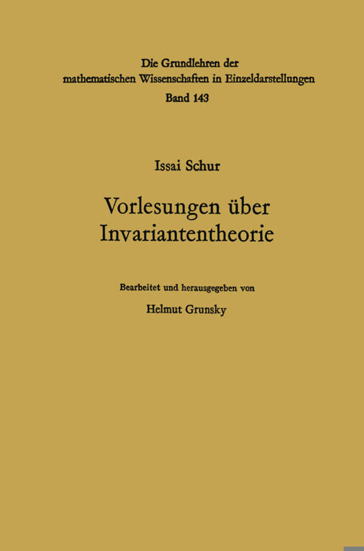Wer seinerzeit das Gliick hatte, die Vorlesungen von IssAr SCHUR zu hOren, dem sind sie als etwas vom SchOnsten und Wertvollsten seiner wissenschaftlichen Ausbildung in Erinnerung; das kommt immer wieder in Gesprachen zwischen seinen ehemaligen Horem zum Ausdruck. Ein solches Gesprach war der AnstoJ3 zu der vorliegenden Veroffent- lichung. SCHUR selbst hat sieher nie daran gedacht, diese Vorlesung, so wie er sie gehalten hat, zu publizieren, doch wird wohl niemand ein Zeichen mange1nden Respektes gegeniiber SCHURS Absichten darin erblicken, wenn es nun seitens eines ehemaligen Horers geschieht. Wie schon der Titel besagt, handelt es sich hier natiirlich nicht urn ein Lehrbuch der Invariantentheorie; ein solches miiJ3te eine weit groJ3ere, wenn auch keineswegs enzyklopadische Vollstandigkeit anstreben. Die Absicht des vorliegenden Buches ist vielmehr genau dieselbe wie die einer Vorlesung: Es mochte einen einigermaJ3en bequemen Zugang zu seinem Gegenstand eroffnen, diesen von verschiedenen, keineswegs von allen Seiten beleuchten und das Interesse des Lesers reizen, sich an Hand anderer Werke weiter zu vertiefen. Dafiir wollen die Literatur- hinweise eine kleine Hilfe sein; sie sollen auJ3erdem Verbindungen zur heutigen Algebra herstellen. Als die hier wiedergegebene Vorlesung gehalten wurde, war die groBe Zeit der Invariantentheorie schon voriiber und sie gilt heute vielfach als ein toter Zweig der mathematischen Wissenschaften*. Zwei wesentliche Griinde dafiir werden angefiihrt: 1. ihre wichtigsten Probleme seien gelost, 2. sie sei eine Kalkiilwissenschaft, wahrend die heutige Mathematik die begriffliche Allgemeinheit in den Vordergrund des Interesses stelle.
