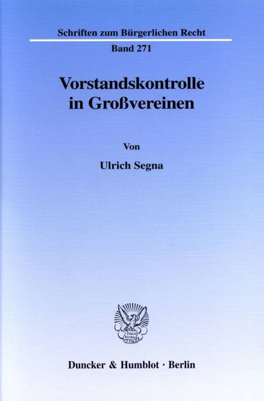 Ulrich Segna nimmt eine umfassende Analyse und Fortbildung des geltenden Vereinsrechts vor und fragt, welche gesetzgeberischen Maßnahmen erforderlich sind, um die Vorstandskontrolle in Großvereinen zu verbessern. Er versteht seine Untersuchung insofern auch als Ergänzung zur gegenwärtig geführten »Corporate Governance«-Debatte.