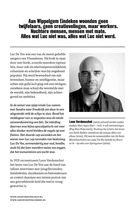 In VOS reconstrueert Leon Verdonschot het leven van Luc De Vos aan de hand van talloze interviews met (jeugd)vrienden, familieleden, muzikanten en bewonderaars en creëert daarmee een intiem portret van een getroebleerde held die veel te vroeg gestorven is.