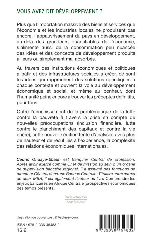Plus que l'importation massive des biens et services que l'économie et les industries locales ne produisent pas encore, l'appauvrissement du pays en développement, au-delà des grandeurs quantifiables de l'économie, s'alimente aussi de la consommation peu nuancée des idées et des concepts de développement produits ailleurs ou simplement mal absorbés. Au travers des institutions économiques et politiques à bâtir et des infrastructures sociales à créer, ce sont les idées qui rapprochent des solutions spécifiques à chaque contexte et ouvrent la voie au développement économique et social, et même au bonheur, dont l'humanité peine encore à trouver les préceptes définitifs, pour tous. Outre l'enrichissement de la problématique de la lutte contre la pauvreté à travers la prise en compte de nouvelles préoccupations (inclusion financière, lutte contre le blanchiment des capitaux et contre la vie chère), cette nouvelle édition tente d'analyser, avec plus de hauteur et de recul liés à l'expérience, la complexité des relations économiques internationales.