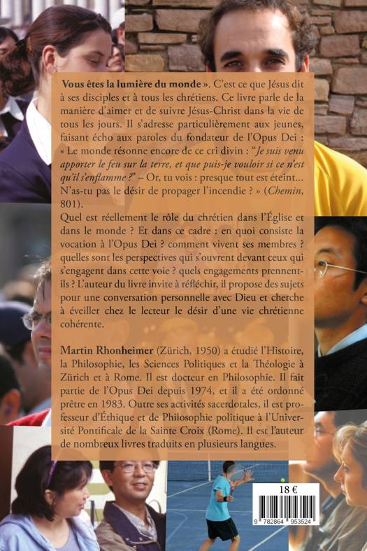 Vous êtes la lumière du monde . C'est ce que Jésus dit à ses disciples et à tous les chrétiens. Ce livre parle de la manière d'aimer et de suivre Jésus-Christ dans la vie de tous les jours. Il s'adresse particulièrement aux jeunes, faisant écho aux paroles du fondateur de l'Opus Dei : Le monde résonne encore de ce cri divin : Je suis venu apporter le feu sur la terre, et que puis-je vouloir si ce n'est qu'il s'enflamme ? _ Or, tu vois : presque tout est éteint... N'as-tu pas le désir de propager l'incendie ? (Chemin, 801). Quel est réellement le rôle du chrétien dans l'Église et dans le monde ? Et dans ce cadre : en quoi consiste la vocation à l'Opus Dei ? comment vivent ses membres ? quelles sont les perspectives qui s'ouvrent devant ceux qui s'engagent dans cette voie ? quels engagements prennent-ils ? L'auteur du livre invite à réfléchir, il propose des sujets pour une conversation personnelle avec Dieu et cherche à éveiller chez le lecteur le désir d'une vie chrétienne cohérente.