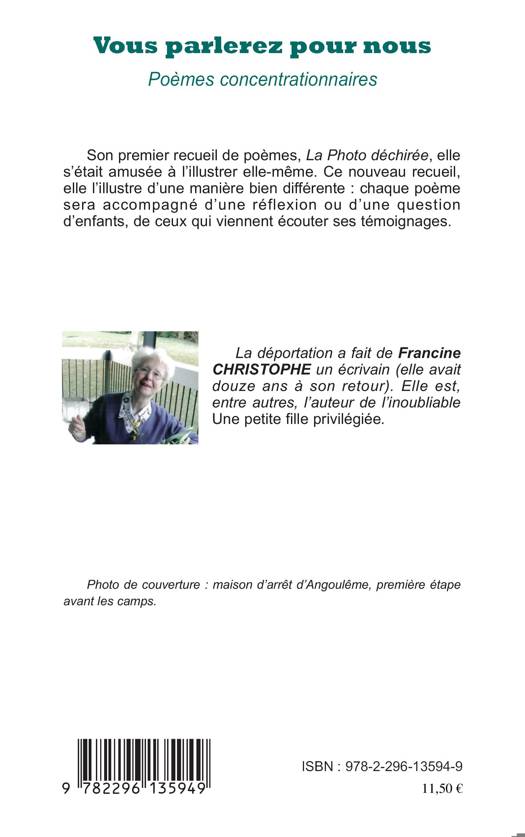 Son premier recueil de poèmes, La Photo déchirée, elle s'était amusée à l'illustrer elle-même. Ce nouveau recueil, elle l'illustre d'une manière bien différente : chaque poème sera accompagné d'une réflexion ou d'une question d'enfants, de ceux qui viennent écouter ses témoignages.