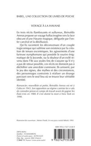 Trois voyages à travers l'écriture hallucinatoire de Reinaldo Arenas vers la face obscure d'une Havane magique, défigurée par l'enfer castriste et la désillusion de tous ceux qui ont cru à la révolution.