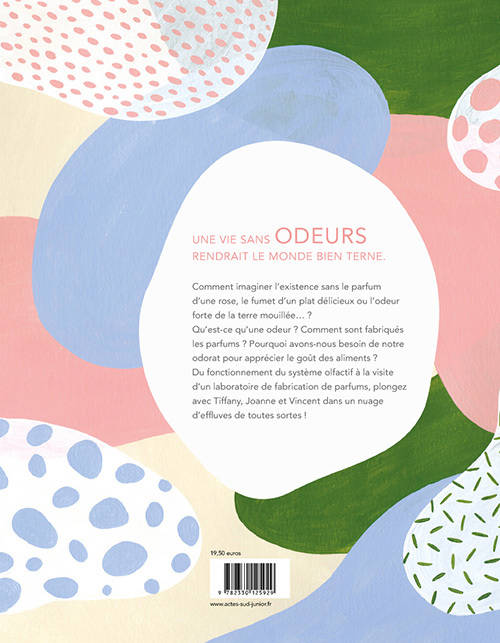 Dans cette BD documentaire, Joanne, Vincent et Tiffany partent à la découverte des parfums et des odeurs. Guidés par un spécialiste de l'odorat, ils apprennent les secrets du système olfactif, mais aussi gustatif, et accèdent à l'univers mystérieux de la parfumerie avec un "nez" qui décompose pour eux les étapes de la création d'un parfum. On découvre dans ce livre que le goût et l'odorat sont liés, on explore les odeurs désagréables et les conséquences de l'alimentation sur le corps, on analyse les parfums de synthèse et on retrouve la mémoire grâce à la madeleine de Proust... !