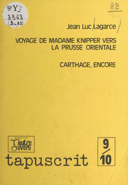 Jean-Luc Lagarce, né le 14 février 1957. Études de philosophie à Besançon, depuis 1975. Maître d’internat dans un lycée de Besançon. Cours d’Art dramatique au Conservatoire de Besançon, avec Paul Lerat, de 1975 à 1978. Cours de technique théâtrale, au Centre d’études et de recherches théâtrales, à Besançon, avec Jacques Fornier. En 1977, création d’une troupe, le Théâtre de la Roulotte, avec des camarades du Conservatoire. En 1977 également, il commence à écrire pour le théâtre (La bonne de chez Ducatel, Erreur de construction, La place de l’autre. Il aborde aussi la mise en scène avec sa troupe.