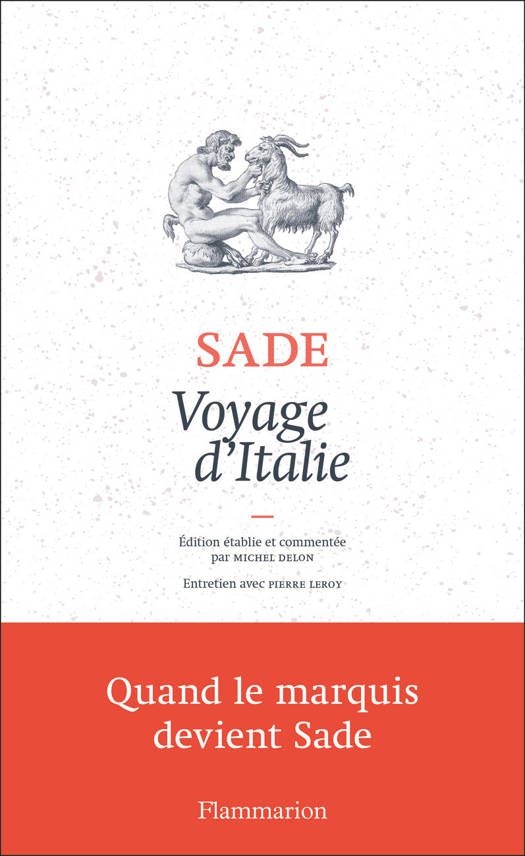 "En juillet 1775, pour ne pas être arrêté, Sade fuit en Italie. Durant presque un an, il va séjourner dans la Péninsule, s'attardant à Florence, Rome et Naples. Il découvre l'art antique et la peinture italienne, sympathise avec un artiste qui l'initie aux débats esthétiques. Il dénonce le poids de l'Église et s'enthousiasme pour une liberté des moeurs dont il feint de s'offusquer. Il rassemble une vaste documentation et met en chantier un Voyage d'Italie qui est une exploration de son Italie personnelle : volcanique, passionnée, excessive, jouissive. Il y travaillera jusqu'à la fin de sa vie sans jamais l'achever, et la matière en nourrira l'ensemble de sa création ultérieure."Michel Delon.