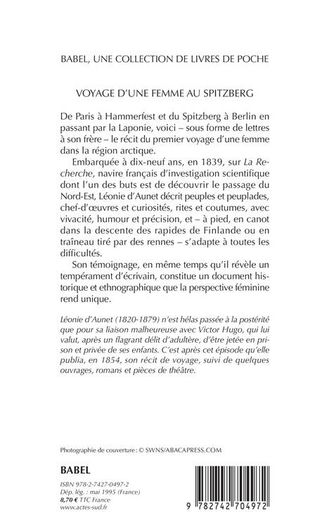 La demande fut acceptée, fort heureusement pour le lecteur, qui aujourd'hui encore peut profiter de ce récit d'une voyageuse, remarq uable dans son écriture et sa sensibilité. L'intérêt est géographique aussi : l'approche de la banquise, de nos jours encore, est un spectacle remarquable et le Spitzberg, bien que norvégien, n'est pas un circuit facile. Descendant du Grand Nord par voie terrestre, Léonie d'Aunet nous décrit en outre les Lapons comme le faisaient peu de gens à cette époque. Sensible et cultivée, elle n'omet pas de visiter les villes et leurs musées, enjouée et résistante, elle sait dormir à la dure et s'adapter aux difficultés