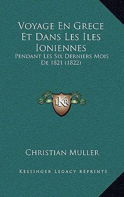 ""Voyage en Gr�����ce et dans les �����les Ioniennes: pendant les six derniers mois de 1821"" est un livre de Christian Muller publi����� en 1822. Dans ce livre, Muller d�����crit son voyage en Gr�����ce et dans les �����les Ioniennes pendant les six derniers mois de l'ann�����e 1821. Il d�����crit les paysages, les villes et les villages qu'il a visit�����s, ainsi que les coutumes et les traditions des habitants de ces r�����gions. Muller d�����crit �����galement les �����v�����nements politiques et historiques qui se sont d�����roul�����s en Gr�����ce ������ cette �����poque, notamment la guerre d'ind�����pendance grecque contre l'Empire ottoman. Le livre est une source pr�����cieuse d'informations sur la Gr�����ce et les �����les Ioniennes au d�����but du XIXe si�����cle, et sur les �����v�����nements qui ont conduit ������ l'ind�����pendance de la Gr�����ce en 1830.""This Book Is In French.This scarce antiquarian book is a facsimile reprint of the old original and may contain some imperfections such as library marks and notations. Because we believe this work is culturally important, we have made it available as part of our commitment for protecting, preserving, and promoting the world's literature in affordable, high quality, modern editions, that are true to their original work.