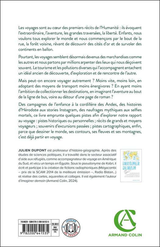 On a souvent tendance à dire « j’ai fait l’Irlande » plutôt que « j’ai visité l’Irlande », et à accumuler, parfois jusqu’à l’excès, les destinations tant touristiques que – faussement – exceptionnelles. Mais aujourd’hui, l’impact environnemental du surtourisme est indéniable, tout comme il a tendance à faire disparaître les spécificités d’une région, sa culture, ses coutumes. Les visites à dos d’éléphant en Thaïlande tout comme les margaritas du centre touristique de Naples n’ont rien d’authentique, elles sont les produits d’une image fantasmée et entretenue par des milliers de touristes qui viennent chercher la même chose au même endroit. Qu’est-ce qui nous pousse à voyager ? Qu’est-ce qu’on en retient et qu’on transmet ? Quel est notre impact sur les territoires et les populations des endroits que l’on visite ? Dans ce nouvel essai réflexif, Julien Dupont s’interroge sur l’idée du voyage touristique et son impact tant écologique que sociétal. Alliant comme à son habitude des mots et des cartes subjectives, il s’appuie sur des données scientifiques, économiques, philosophiques ou sociologiques, sur sa propre expérience, des enquêtes de terrain et des témoignages, ainsi que sur les récits des grands voyageurs tout comme la littérature et le cinéma. Sa cartographie, dite « sensible » – elle permet de restituer la subjectivité de la perception de l’espace –, mais également « radicale » – elle a le courage de montrer ce qu’on a tendance à vouloir laisser caché –, aide à percevoir le monde sous un autre angle et à nous interpeller. La dernière partie du livre, consacrée à l’avenir des voyages, permet d’ouvrir des portes sur de possibles nouvelles manières de voyager : plus longuement, plus près, voire par procuration.