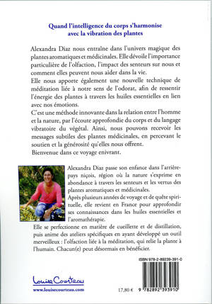 Alexandra Diaz nous entraîne dans l'univers magique des plantes aromatiques et médicinales. Elle dévoile l'importance particulière de l'olfaction et l'impact des senteurs sur nous et comment elles peuvent nous aider dans notre vie. Elle nous apporte également une nouvelle technique de méditation liée à notre sens de l'odorat, afin de ressentir l'énergie des plantes à travers les huiles essentielles en lien avec nos émotions. C'est une méthode innovante dans la relation entre l'homme et la nature, par l'écoute approfondie du corps et du langage vibratoire du végétal. Ainsi, nous pénétrons notre sentier intérieur subtil permettant de recevoir les messages des plantes médicinales et de percevoir le soutien et la générosité qu'elles nous offrent. Bienvenue dans ce voyage enivrant.