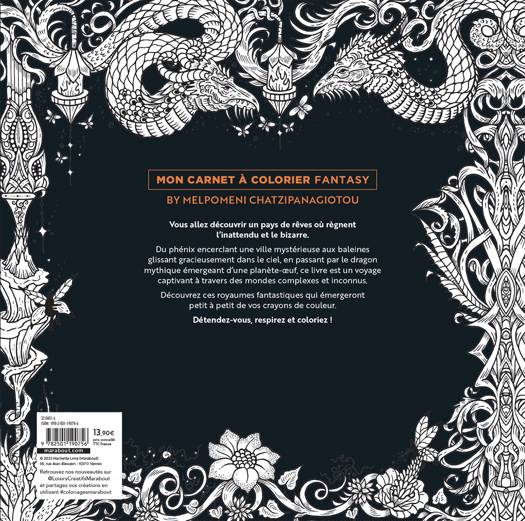 Vous allez découvrir un pays de rêves où règnent l’inattendu et le bizarre. Du phénix encerclant une ville mystérieuse aux baleines glissant gracieusement dans le ciel, en passant par le dragon mythique émergeant d’une planète-oeuf, ce livre est un voyage captivant à travers des mondes complexes et inconnus. Découvrez ces royaumes fantastiques qui émergeront petit à petit de vos crayons de couleur. Détendez-vous, respirez et coloriez !