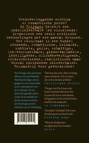 Grensverleggende erotica of romantische porno? In Vrijages beleeft een ondefinieerbare (en wisselende) ik-persoon een reeks erotische ontmoetingen met een aantal vrouwen. Het resultaat is een bundel stomende, romantische, keiharde, subtiele, geile, schattige, (on)voorspelbare, gendervariabele, intelligente, clichébevestigende, roldoorbrekende, realistische maar vooral opwindende seksverhalen. Hofmakerij voor gevorderden!